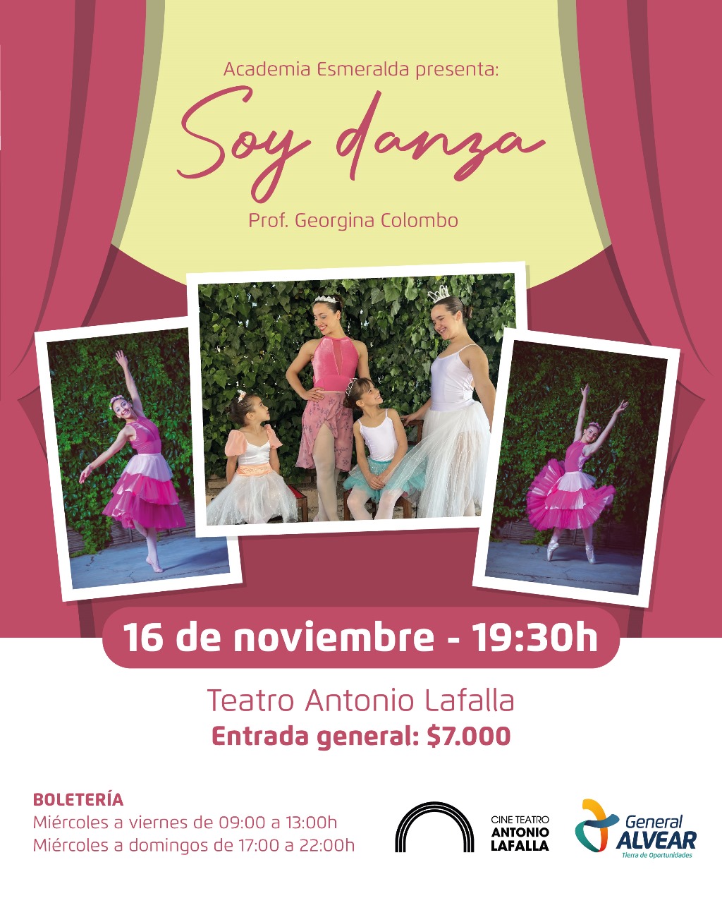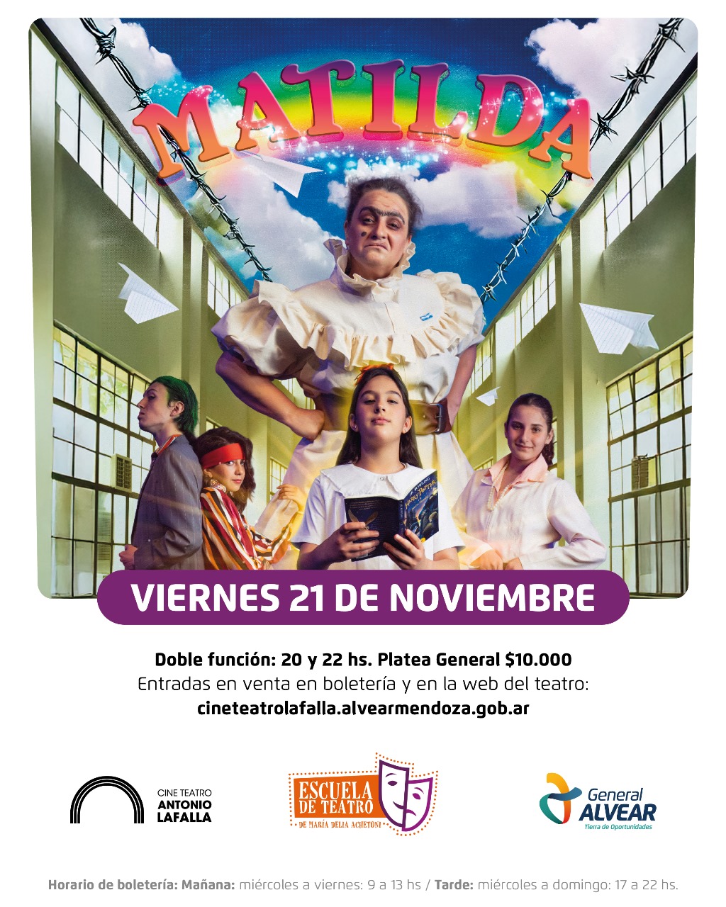 Nada es lo que parece 3 Depredador En Nada es lo que... Depredador – Tierras Lejanas Depredador Depredador:... Zoopocalipsis Zoopocalipsis... Teléfono Negro 2 Teléfono Negro 2 Secuela del... PELÍCULAS EN CARTELERA COMPRAR ENTRADAS ONLINE Jueves y Viernes 2D – 21:00hs Sábado y Domingo 2D – 21:00hs HORARIOS BOLETERÍA Mañana de miércoles a viernes de 9hs a 13hs Tarde de jueves a domingo de 17hs a 22hs PRECIOS 2D y 3D: Entrada General $6000 | Menores de 12 años y/o jubilados $5000| Menores de 2 años gratis PRÓXIMAS OBRAS Y EVENTOS Compra online tus entradas para las obras y eventos del teatro. Click en el botón de arriba.