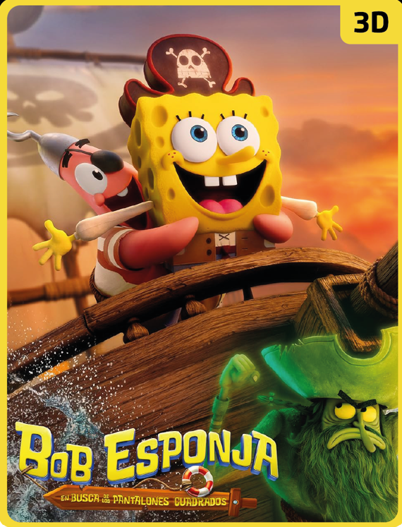 Bob Esponja y sus amigos de Fondo de Bikini zarpan en su mayor y más nueva aventura cinematográfica: ¡Bob Esponja: En busca de Pantalones Cuadrados! Deseoso de ser un tipo grande, Bob Esponja se embarca en una aventura para demostrar su valentía a Don Cangrejo siguiendo al Holandés Volador, un misterioso y audaz pirata fantasma, en una comedia marítima que lo lleva a las profundidades del océano, donde ninguna esponja ha estado antes.
